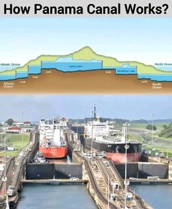 The Panama Canal operates using a system of locks that raises and lowers ships between the Atlantic and Pacific Oceans. Since these oceans are at different levels, the canal employs three sets of locks—Gatun, Pedro Miguel, and Miraflores—to adjust a ship's elevation. When a vessel enters the canal, water fills the lock chamber to lift the ship up to the level of Gatun Lake, an artificial lake created to assist the canal’s function. After crossing the lake, the ship is lowered back down through the locks on the opposite side, enabling it to pass through either ocean.