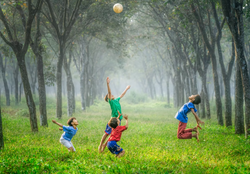 As he jumped in the air, I grabbed my camera and took a picture of him. It just shows him at the right angle as he is smiling and leaping in the air.